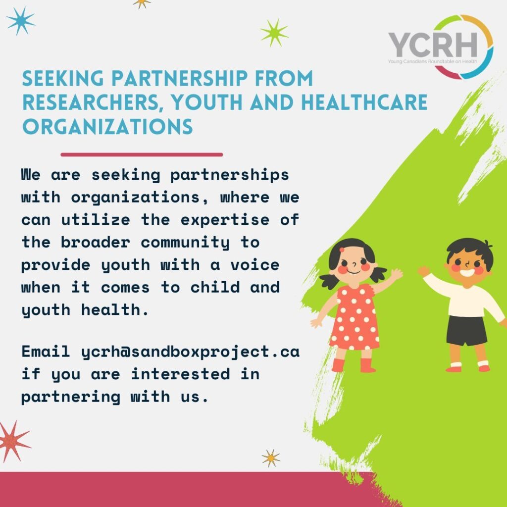 The Young Canadians Roundtable on Health (YCRH) is seeking partnerships with like-minded organizations to give youth a voice and provide consultation and strategies into meaningful youth engagement. Researchers, healthcare organizations and those working in the youth sector interested in learning about youth perspectives on children and youth health and well-being can contact the YCRH at […]