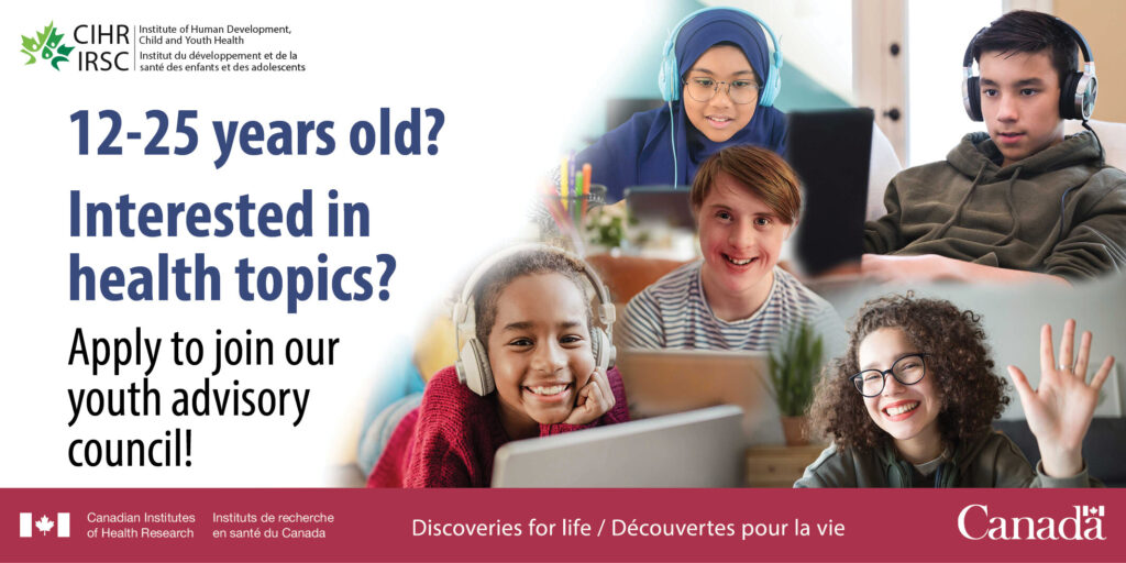 IHDCYH is looking for young Canadians between the ages of 12-25 to join their youth advisory council The Institute of Human Development, Child and Youth Health (IHDCYH)’s youth advisory council is a group of diverse young Canadians who are passionate about health and health research. The council brings the youth voice directly into conversations about […]