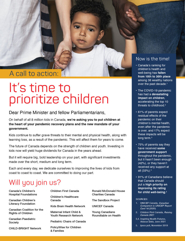 Children First Canada and its partners – including The Sandbox Project and the Young Canadians Roundtable on Health – are uniting to raise the alarm about the current crisis facing children and youth across the country. COVID-19 school closures, the lack of access to sports and recreational programs, and social isolation have led to devasting […]