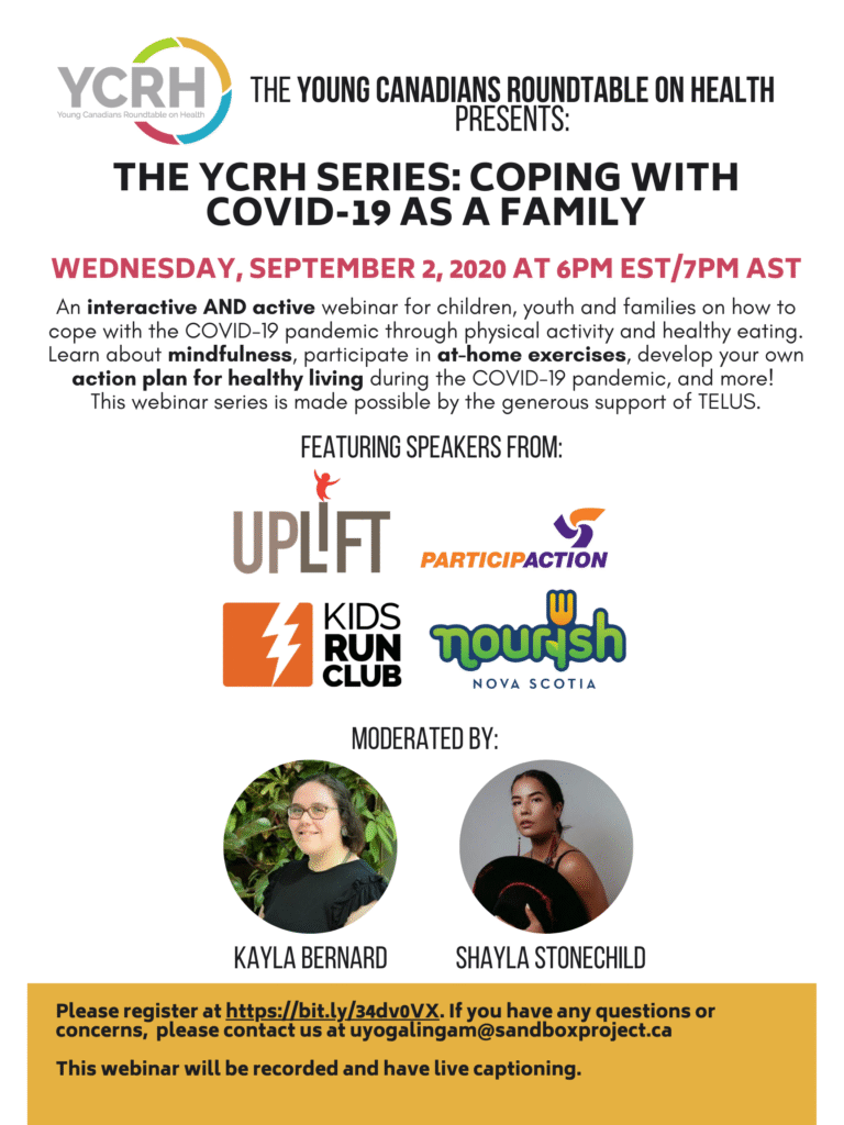 Taking place Wednesday, September 2, 2020 at 6 pm EST/7 pm AST, join the Young Canadians Roundtable on Health in an interactive AND active webinar on coping with the COVID-19 pandemic through physical activity and healthy eating. Learn about mindfulness, participate in at-home exercises, develop your own action plan for healthy living during the COVID-19 […]