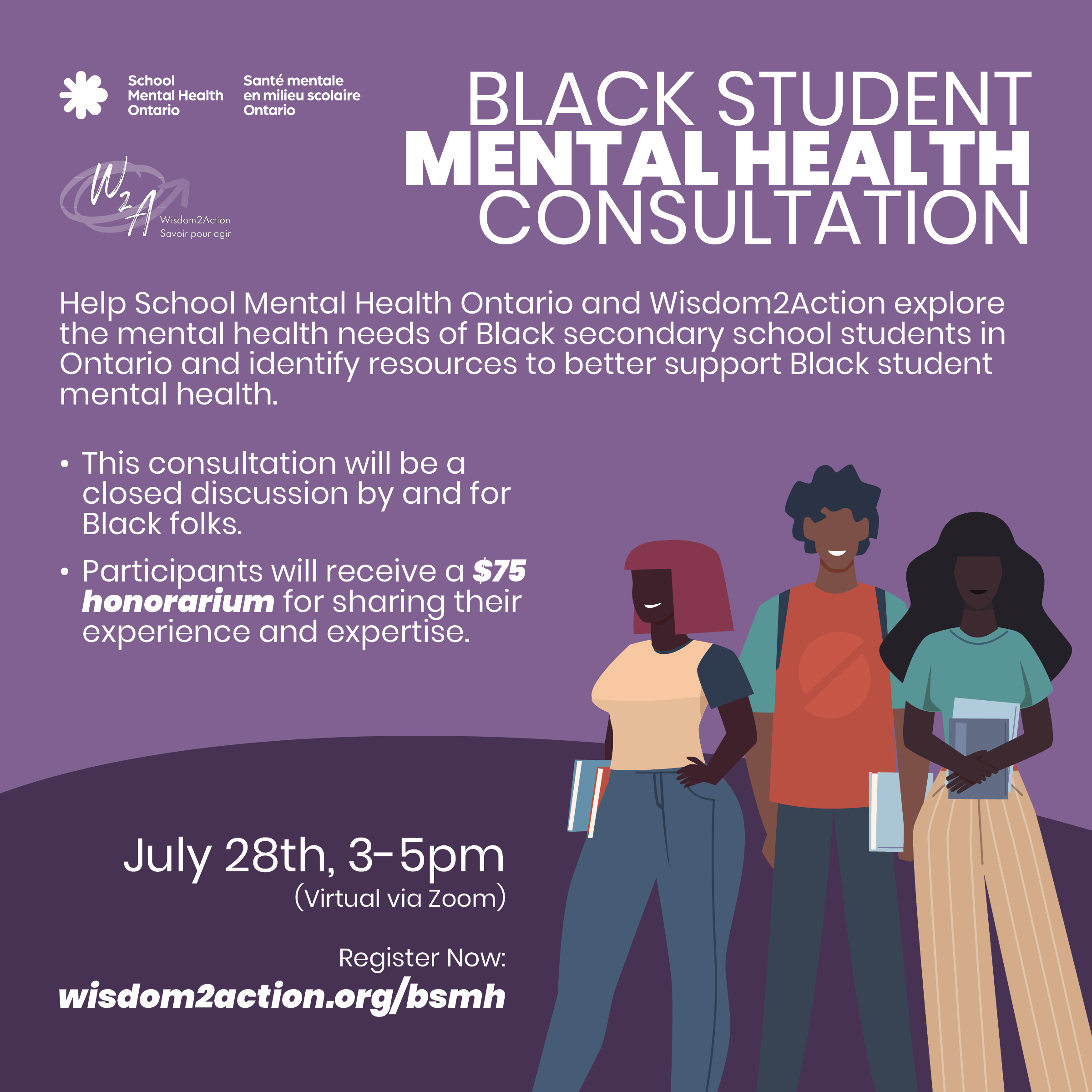 Wisdom2Action and School Mental Health Ontario will be holding a consultation on Black Student Mental