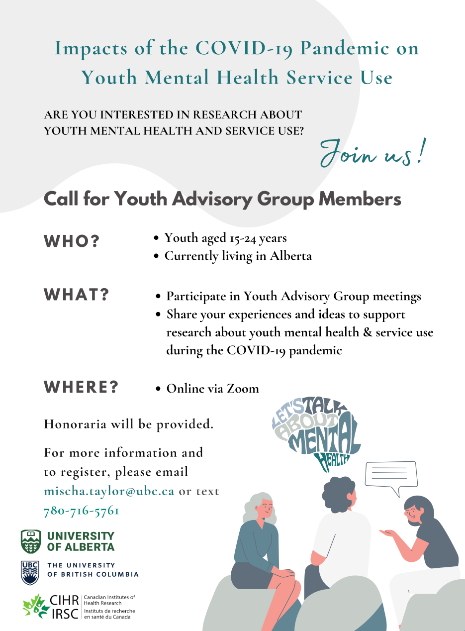 Invitation to participate in a Youth Advisory Group for Alberta Youth
